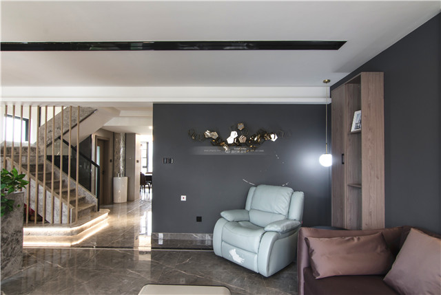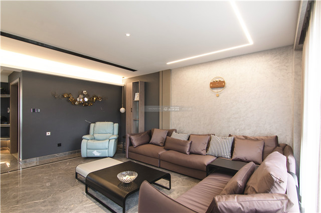 本案是格調、品質的現代風格裝修,以充滿品質感的灰黑色為主色調,以時尚、精雅的設計筆觸,讓空間充滿現代家居格調和品質感,以及家的舒適和溫度。