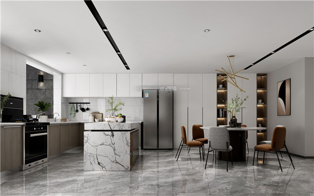 吧臺、中央島臺文藝餐桌椅,無不在展示屬于現(xiàn)代的時尚氣息,青葉飄香,渲染的是那一縷純粹自然的情愫。