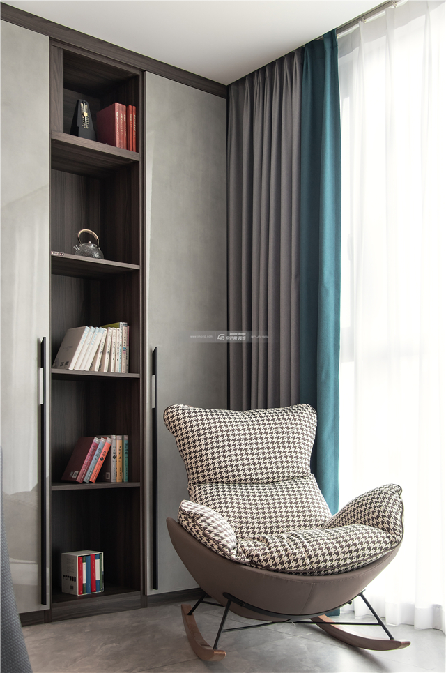 陽臺(tái)上放置千鳥格單椅,陽光透過窗簾灑下斑駁的剪影,一縷書香,身體蜷起舒服的姿勢(shì),打個(gè)微盹,讓陽光混合著慵懶,灑滿愜意的生活。
