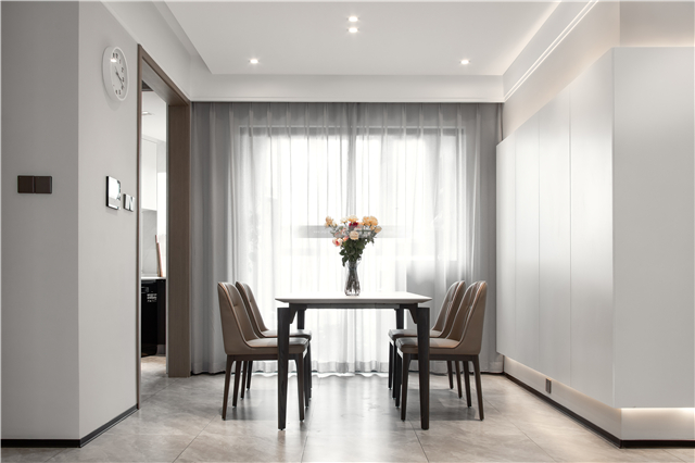 灰色紗簾傳遞的溫柔品質(zhì)感,渲染餐廳里的浪漫情調(diào)。