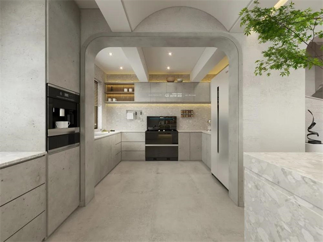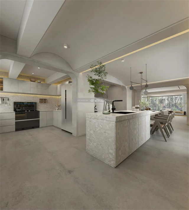 頂面圓弧設(shè)計(jì),包梁方形設(shè)計(jì),及配以姜黃燈色、綠植,加之整體風(fēng)格走向,生機(jī)黯然。