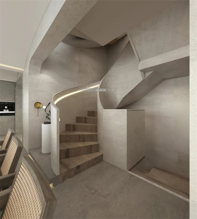 旋轉(zhuǎn)樓梯,線條燈飾的扭轉(zhuǎn)讓夢(mèng)重建。