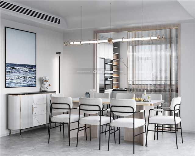 經(jīng)典的黑白搭配,既展現(xiàn)高級的格調(diào),又不失清新之感。采用細線條餐椅,展現(xiàn)精致感的同時,醞釀細膩溫柔的家居體驗。