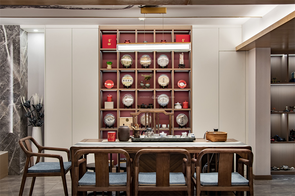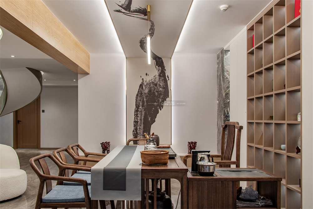 人生一愿,有間茶室,安頓身心,撫慰余生。古樸的茶桌椅、博古架,串聯起貫通古今的時代的印記。一幅山水畫,寄托屋主瀟灑逸然的閑思。偶寄閑情,暫忘喧囂,邀二三知交,煮茶、解語。