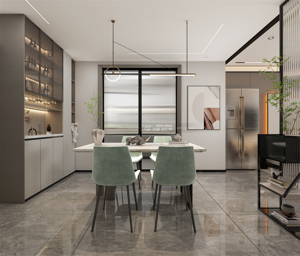豆綠色椅子和餐廳中的綠植,避免了過于冷淡的與硬朗的視覺呈現(xiàn),賦予空間一些自然和清新。