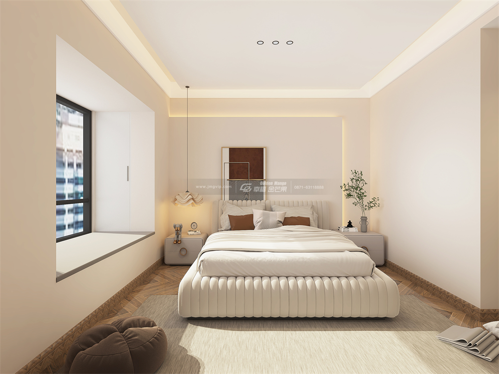 奶白色的色調,溫和又細膩,好像被奶油包裹一般溫柔可人。床頭吊燈、裝飾畫、綠植等單品也為空間帶來更多的層次感與活躍度,這樣清新溫柔的臥室,可真是怎么看都讓人滿心歡喜呀!