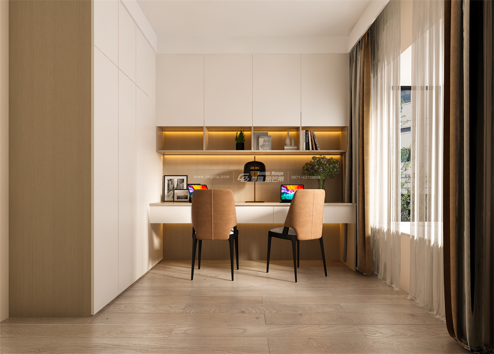 書房全屋整體以留白與原木色調(diào)組成,整個(gè)書房散發(fā)著濃濃的溫潤質(zhì)感,充滿了自然與藝術(shù)氣息,舒適簡(jiǎn)單,怎么看都很喜歡。