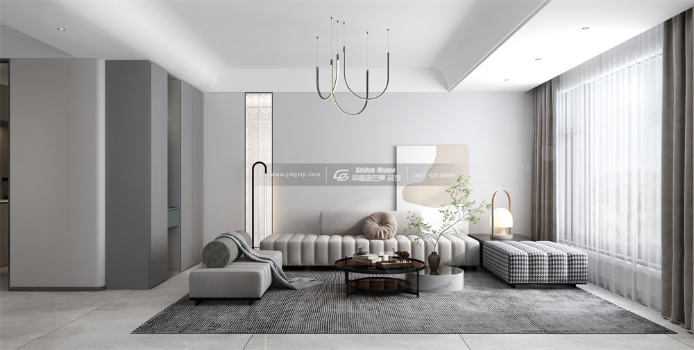霧欲淡,水如空,一葉飄然煙雨中。低飽和的高級(jí)灰色調(diào),自然清新與精致相結(jié)合,給人帶來(lái)一種煙雨朦朧的感覺(jué)。幸福金芒果裝飾在昆明西南海小區(qū)的設(shè)計(jì)就體現(xiàn)出這種感覺(jué),整體空間采用低飽和色調(diào),搭配上現(xiàn)代簡(jiǎn)約的風(fēng)格,自帶濾鏡高級(jí)感!