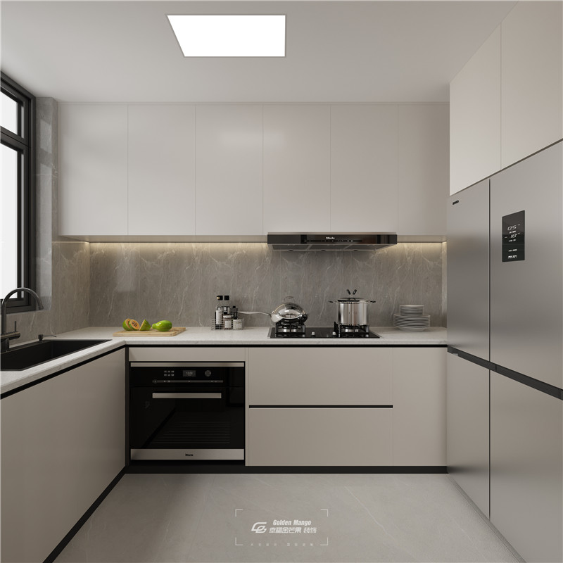 一日三餐與四季,美好生活就此開始。干凈清爽、靜謐的廚房空間,與窗外的燈紅酒綠、城市喧鬧形成鮮明對比。從色調到質感,期待廚房成為美食的載體,更加凸顯食物的美味。