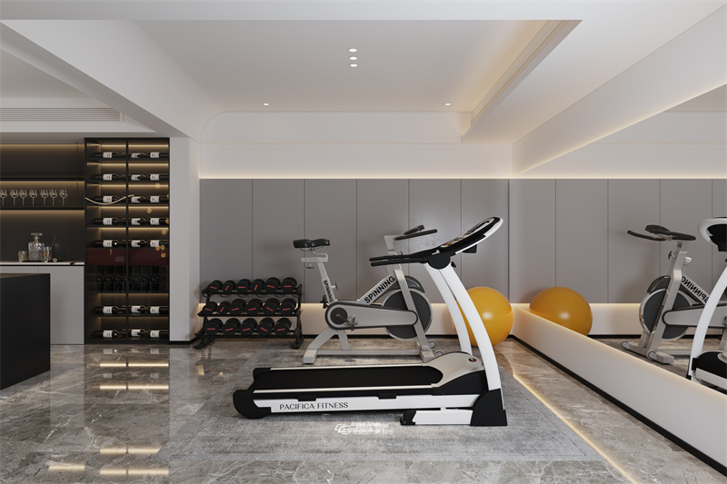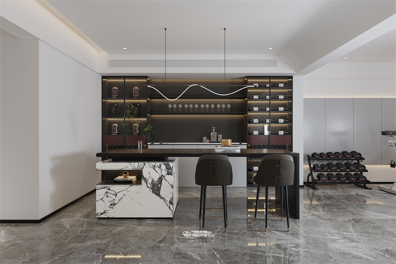 靜謐而雅致的空間內(nèi),白色與灰色交織成一幅簡(jiǎn)約而不失格調(diào)的畫卷,一側(cè)是吧臺(tái),一側(cè)是健身房,簡(jiǎn)約而不失雅致的空間,展現(xiàn)出和諧而統(tǒng)一的美感,完善的功能區(qū)給予別墅大宅超舒適的居住體驗(yàn)。