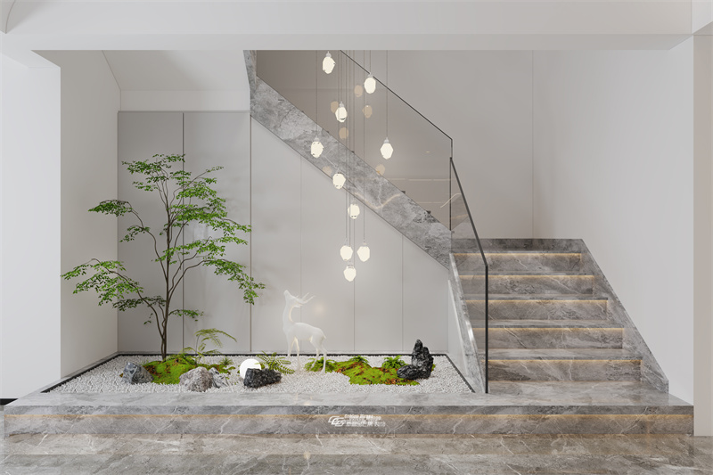 空間運(yùn)用原始質(zhì)樸的石材,點(diǎn)綴自然之姿,在喧囂的都市中獨(dú)留一方自在靜謐的天地,讓別墅家居更多了一些自然的韻味。