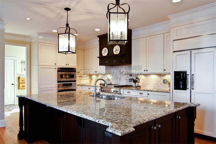 櫥柜要防水防火,櫥柜位置應先定下,廚房電器尺寸先量好,櫥柜門把手選擇大一點的,矮柜最好做成抽屜,推拉式。