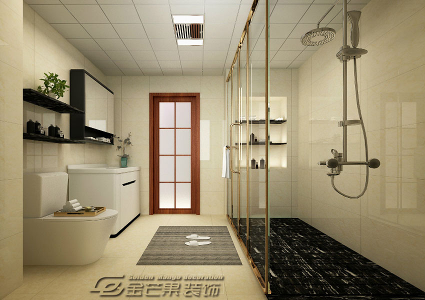 懸吊的淋浴,有著較大的沐浴空間,在沐浴時(shí)更能隨心所欲,外面的防滑毯子更加貼心溫暖,干濕分離的衛(wèi)生間顯得干凈美觀。門框也用了中式元素。