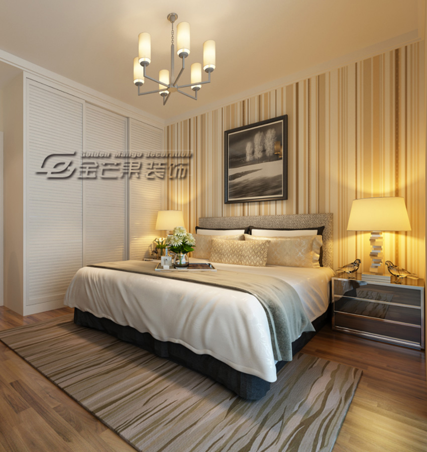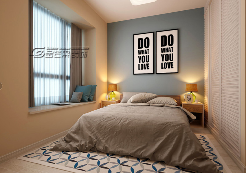 紋理豐富的背景墻和線條強(qiáng)烈的衣柜,兩者相互映襯,相互搭配,相互制約。地板則是木質(zhì)的,質(zhì)感十足,也更舒適。