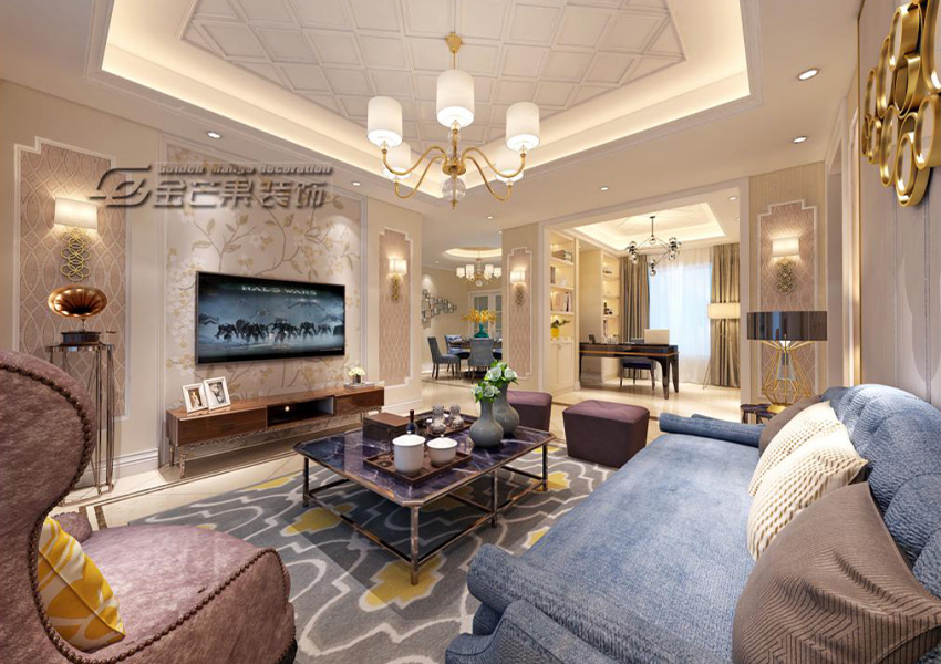 客廳的色彩搭配上雖然運(yùn)用這多種色調(diào),但是絲毫沒有偏離典雅和諧這一中心,在燈具的選擇上具有統(tǒng)一性,電視背景墻壁燈的設(shè)計(jì)顯得格調(diào)十足。吊頂使用紋路清晰的格子搭配,在裝飾品上面則有巴洛克風(fēng)格的味道。方正大氣,窗簾的選擇上恰好契合了整體的風(fēng)格。
