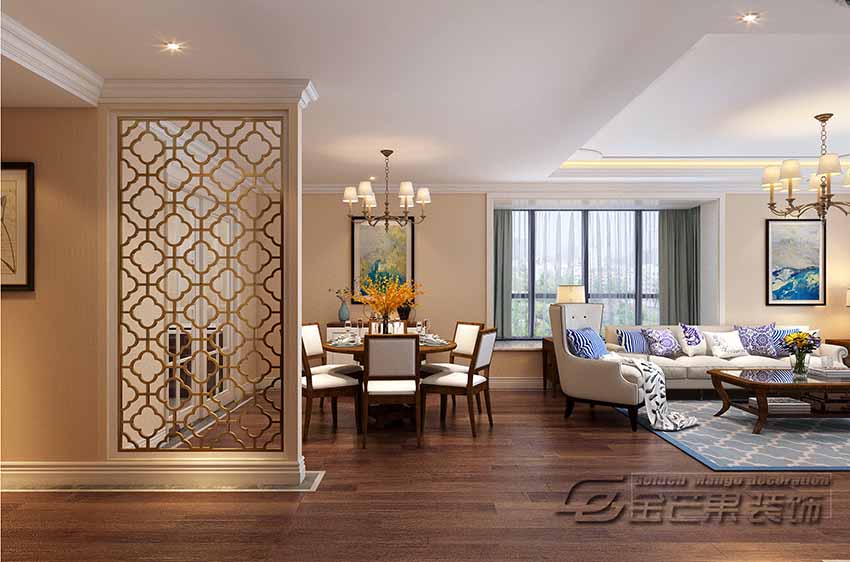案例說明:簡約美式并不同與美式,風(fēng)格上更加內(nèi)斂和低調(diào)。注重的是品質(zhì)的生活,恬靜優(yōu)美的生活徐徐而來。各個空間靈活運(yùn)用色彩的搭配,旨在體現(xiàn)生活醇厚、清新自然,融入了許多的掛畫。雖然少了美式的粗礦和隨意,留下的是簡潔、明了、更好的品質(zhì)體現(xiàn)。
