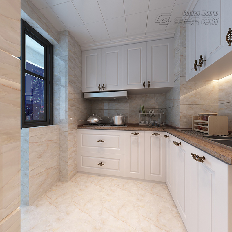 完美邊角的處理,加上歐式風(fēng)格經(jīng)典的配色,美觀和實用,顯露無疑。合理的動線,在使用時會有更好的便利性。柜體下方燈帶的設(shè)計更顯貼心和細(xì)節(jié),操作面方便打理。