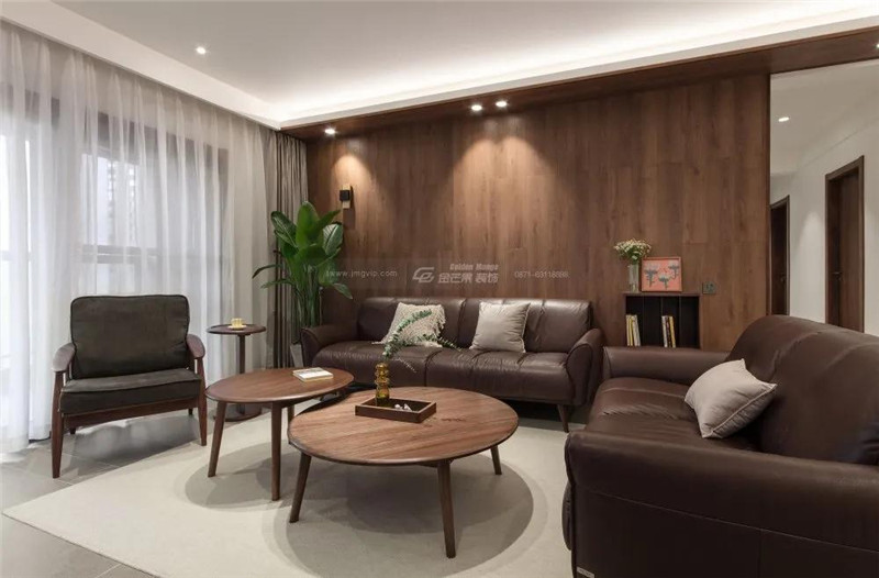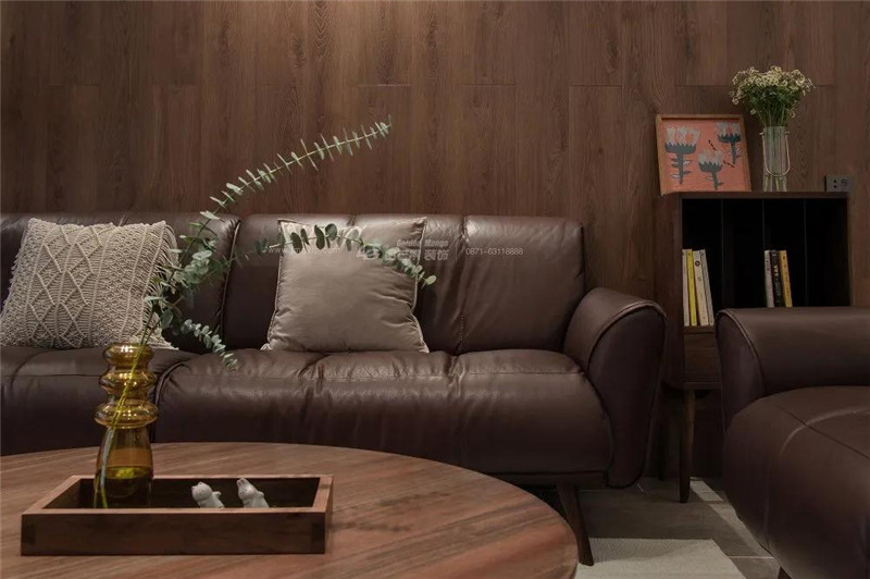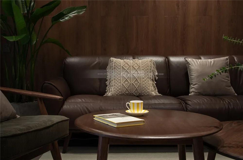 皮質(zhì)沙發(fā)看似酷冷,實則坐感舒適,摩登、優(yōu)雅的格調(diào)讓“半夏時光”韻味更顯。