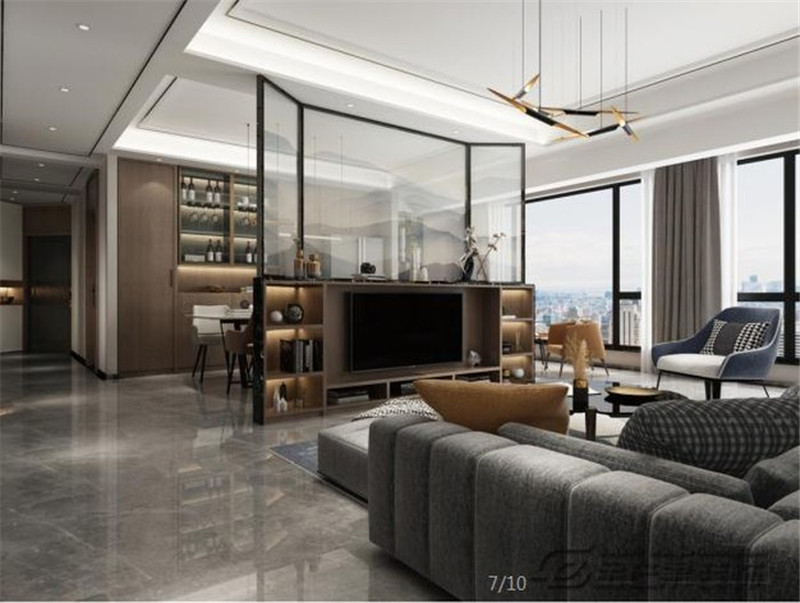 舒雅大氣,氣質卓然,沉靜溫暖的色調賦予家居無限的雅意。灰色的經典經久不衰,獨特的電視背景墻設計,讓家居生活更加個性滿滿。似有若無的群山似近在眼前,又寫意縹緲,藝術感滿滿。