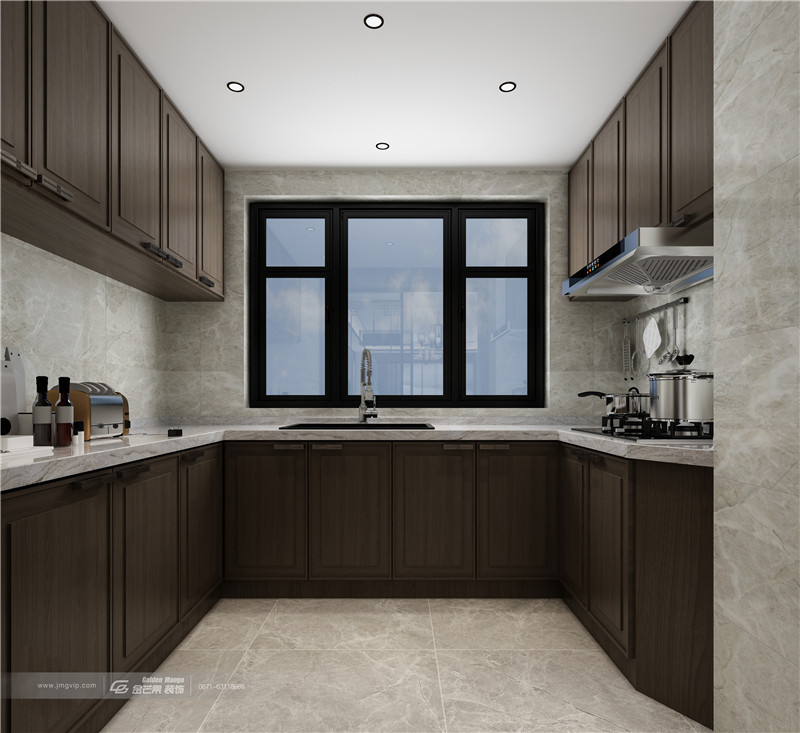 簡雅的木材體現(xiàn)中式的質(zhì)樸,大量柜體的設(shè)計也讓柴米油鹽的細碎有了更多的安置之處。
