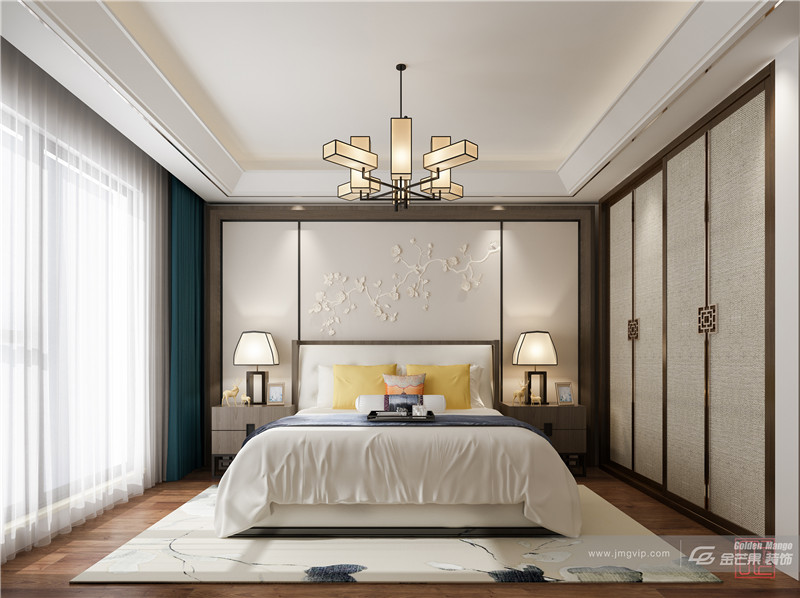 材質(zhì)獨特的衣柜門,刻畫在細節(jié)處的中式元素,不管是對稱的設(shè)計,還是經(jīng)典元素的運用與展現(xiàn),都意在營造著一個主題——端雅貴氣。
