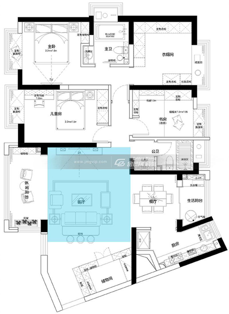 潤城五區136m2輕奢風格裝修丨只一眼,便墜入到優雅的藍色暢想里