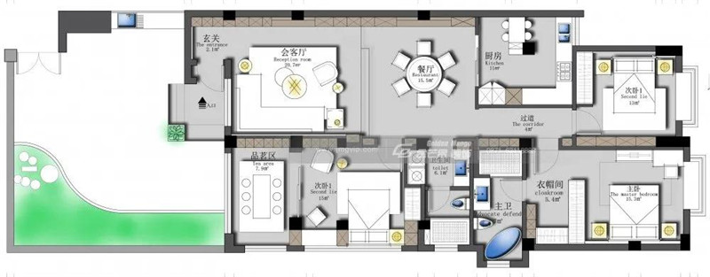 此案例是位于安寧太平萬輝星城的一套平層戶型,室外帶花園,環境安靜、悠閑,采光良好。空閑的時候在院子里曬曬太陽、聽聽鳥語,也是一件美事。