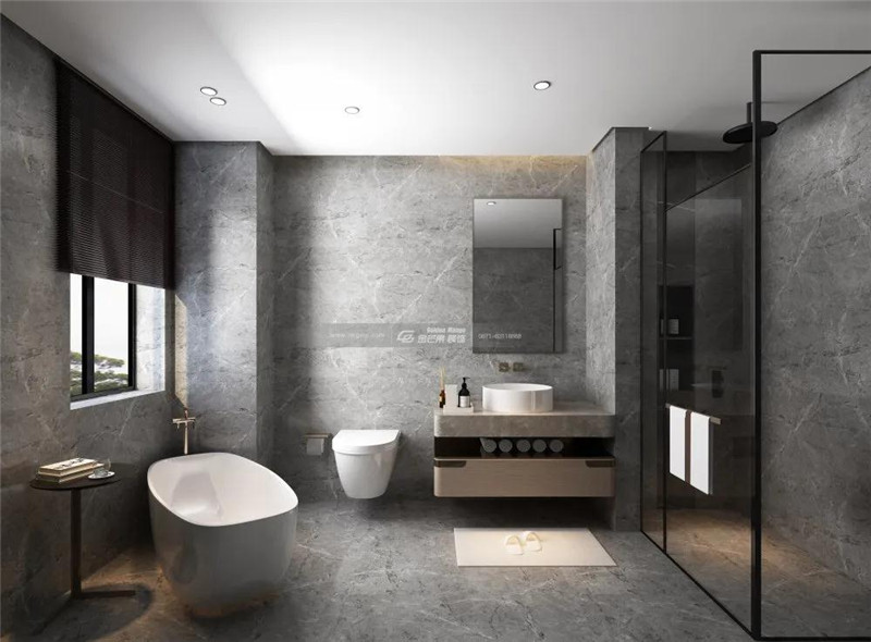 淋浴房在內側做了干濕分離的設計,保證了動線的流暢的同時也不影響浴缸和馬桶區域的視野。