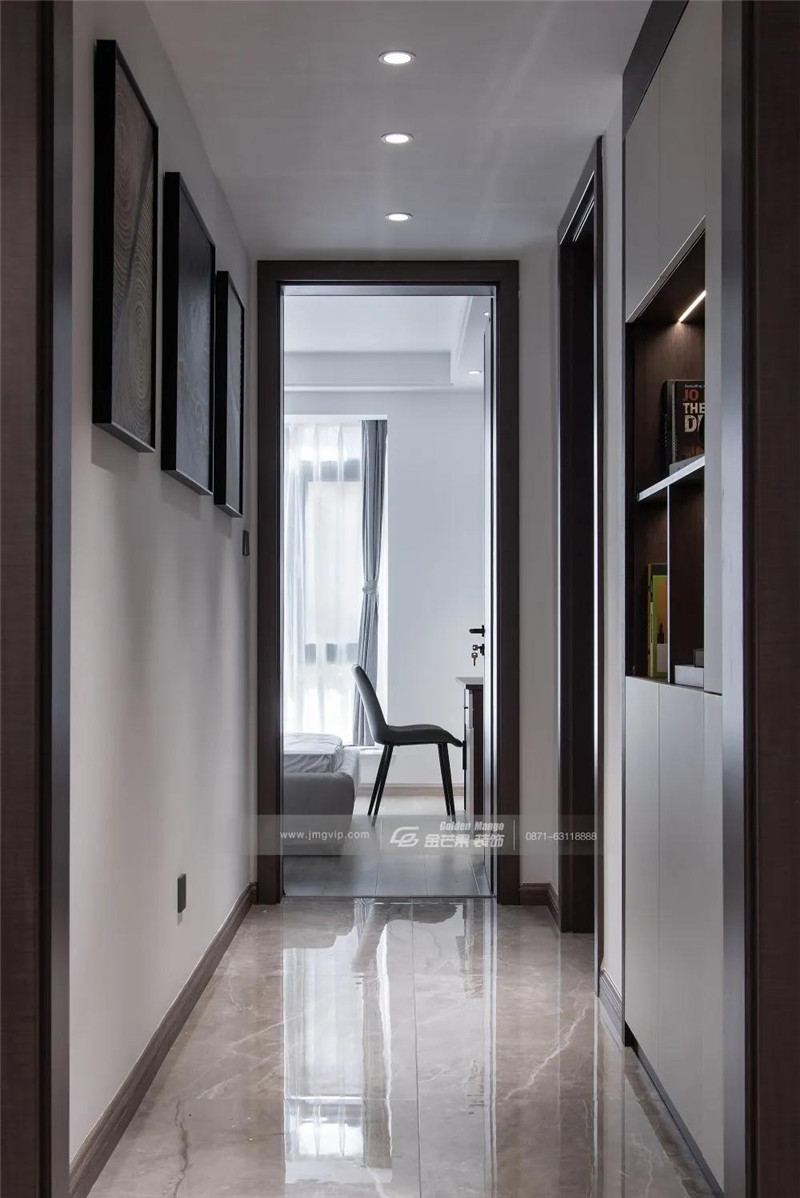 業主真的是一個細節狂了,連接次臥的走道也不能浪費,裝飾畫掛起來,隨處都是生活品質的體現。