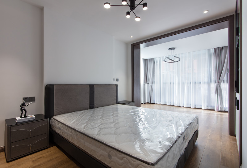 次臥室連接花園,本身具備寬敞、明亮的優勢,運用簡潔大方的設計,搭配白色的紗簾,簡潔大氣,舒服愜意。