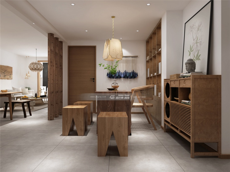 原木和簡約白色的結(jié)合,隨處可見的仿原始建材元素讓家充滿質(zhì)樸、清雅的氣息。燈飾、茶幾、時鐘充滿藝術氣息,展現(xiàn)返璞歸正的家居特色。