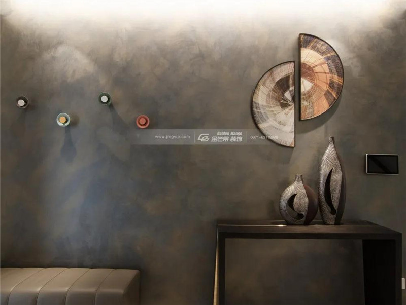 一入戶即是眼前一亮的感覺,一面是玄關(guān)柜,可以隨手放下生活的瑣碎,一面是藝術(shù)品味的展現(xiàn)。仿原始建材的設(shè)計格調(diào)滿滿,讓人忍不住想走進里面看看什么樣了。