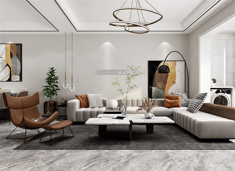 干凈的黑色和白色,呈現一種簡單的高級感,中間點綴一些明亮的家具配飾,增加溫暖的氛圍。