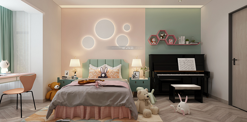 清新、靚麗的配色,給孩子一個絢麗的童年,可愛的燈飾不規(guī)則的造型讓空間充滿活潑、童趣。整體空間是純凈、甜美的風格。