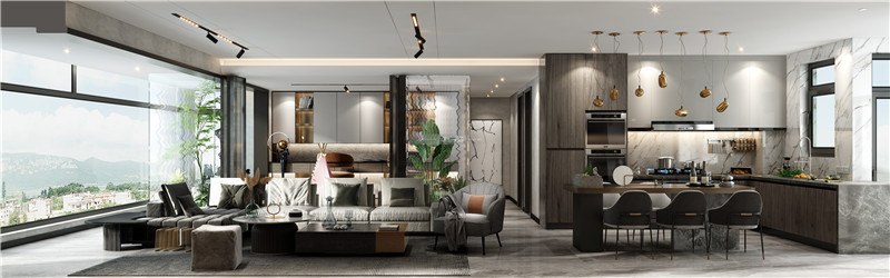 一整面墻的落地窗,將光線很好的放入室內,將自然優勢與空間設計相結合,讓本就高級的空間更顯大氣和通透。