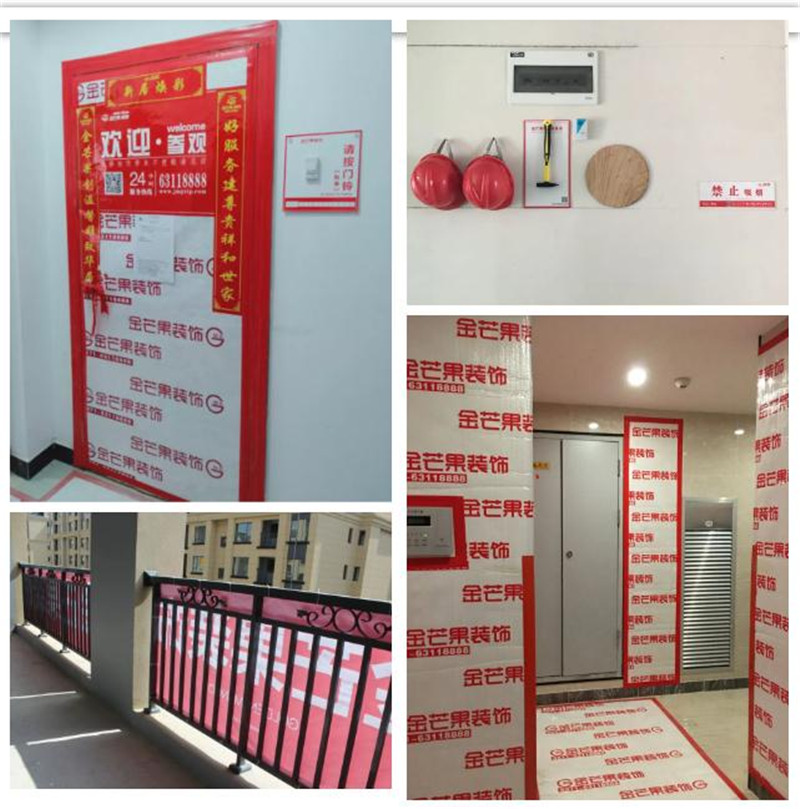 施工過(guò)程中對(duì)項(xiàng)目外圍、電梯口、入戶等施工現(xiàn)場(chǎng),包括門把手、地磚、推拉門軌道等成品及半成品做好保護(hù)工,材料堆放整齊,提供文明、整潔、安全的施工環(huán)境。